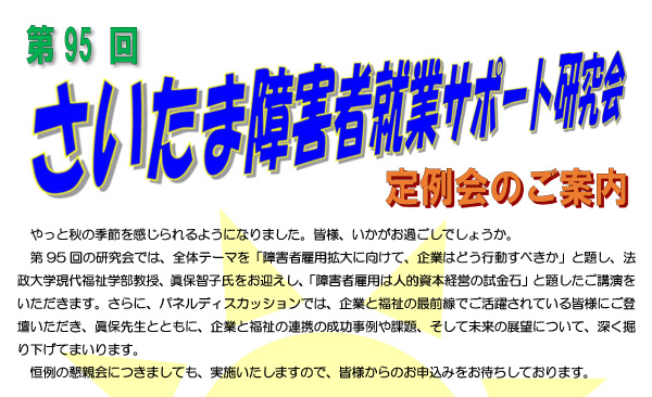 さいたま障害者就業サポート研究会事務局 第95回 定例会のご案内(2025年12月5日(金)開催)